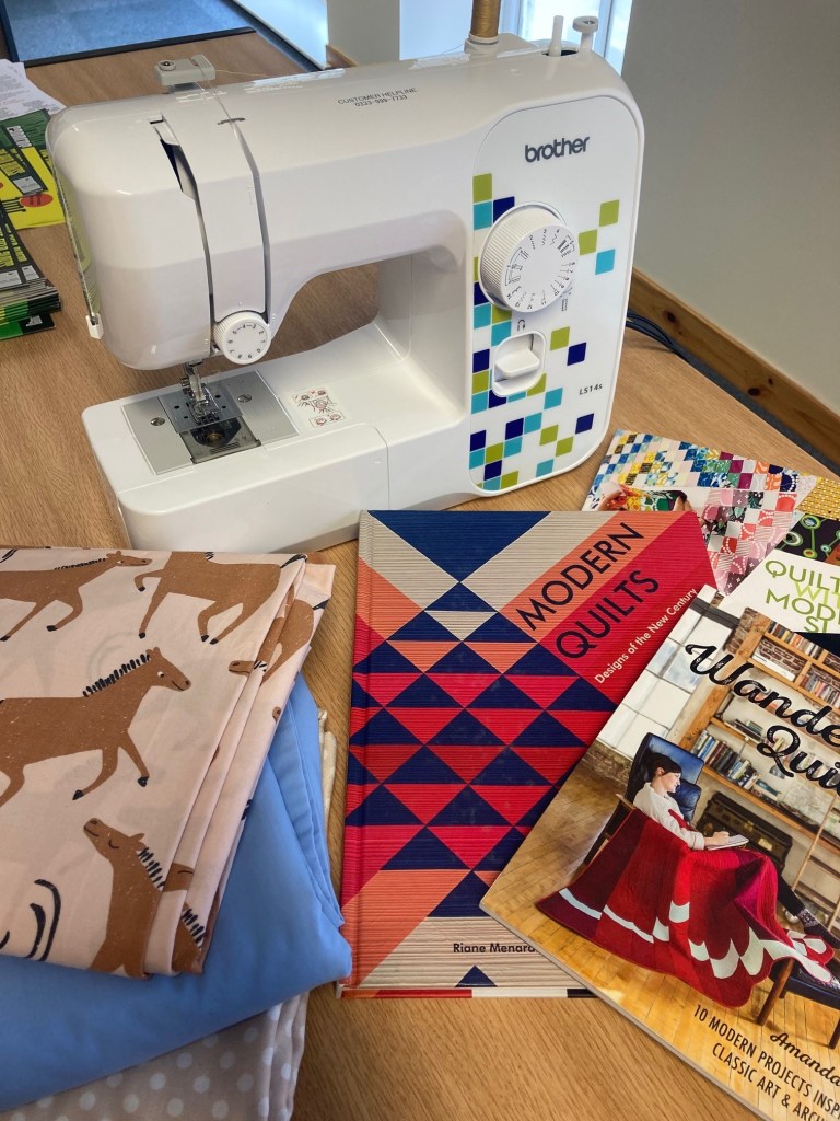 Folk will be there to show you the basics if you’re new to sewing, and we have a bunch of lovely quilting books for inspiration and tips. We have a couple of basic sewing machines, lots of recycled fabrics, and everything else you need to start learning. If you have your own machine and you’re able to, feel free to bring it along.