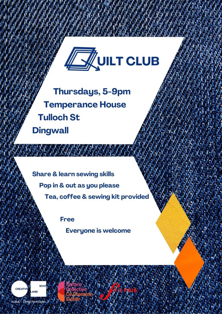 From 6th July, Quilt Club will be run by Jo & Tracy. It now has it’s own Facebook group, where future updates will be found. They now request £3 donation per session.